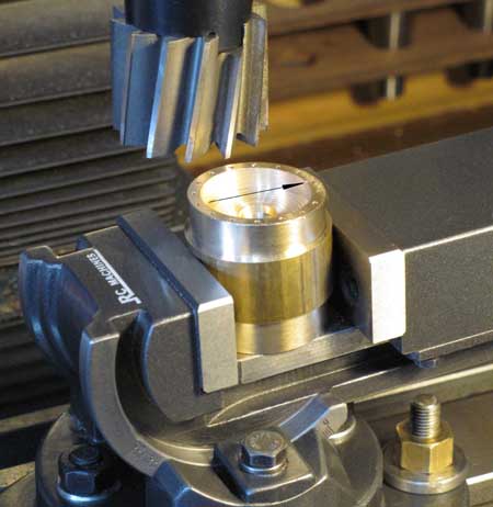 (0,4-mm-Ms-Blech soll später hier angelötet werden), zwei Stufen fräsen, je 180°
