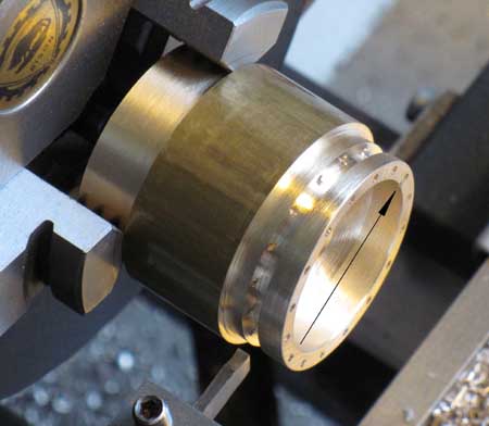 Spannzapfen!!!) auf einen Innendurchmesser von 15 mm ausgebohrt/-gedreht. Danach