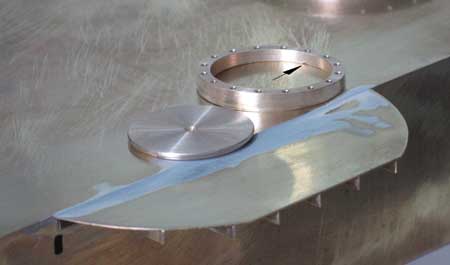 26°-Rundungsschale. Auf Bündigkeit am Deck achten! (Pertinaxklotz)