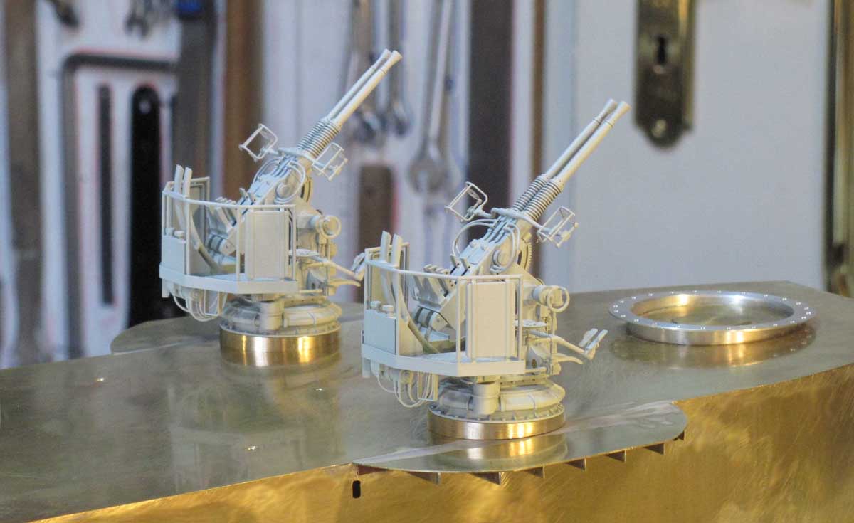 Plattformen für zwei der fünf 40-mm-Zwillinge vorgenommen. Diese kurzen Decks