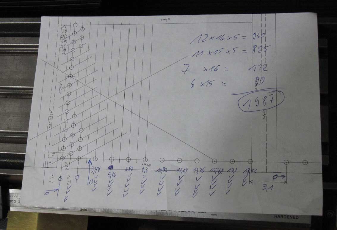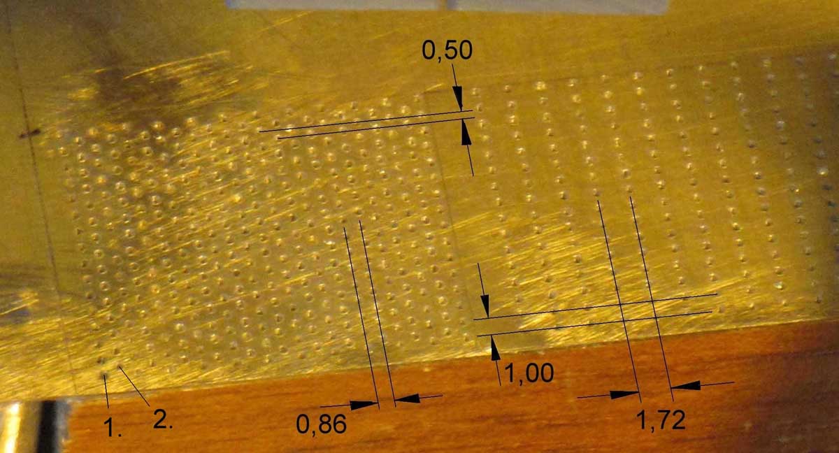 anklicken) Die Reihen haben beim 1. Bohrgang 1,72 mm Entfernung, von