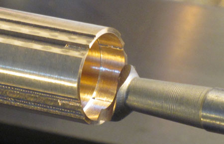 aus Messing gesehen). In dem Bereich werden die leergeschossenen Patronenhülsen
