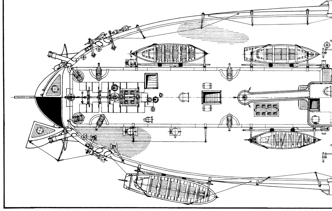 Aus Italien hatte ich im Jahre 1980 auf Umwegen einige Werftpläne vom Turmschiff DUILIO erhalten. Nach einiger Gewöhnung an dieses überaus „verrückte“ Schiff beschloß ich, einen ausführlichen Modellplan zu zeichnen, dessen Generalplan hier gedruckt ist. Weil ich damals herzlich wenig über derart große Schiffe wußte – ich hatte mich bisher nur mit den kleinen „Bötchen“ der DDR-Volksmarine befaßt – mußte ich mich in das Thema Panzerschiffe quasi erst „hineinlesen“. Ich besorgte mir über Hobbyfreunde entsprechende Literatur, in der DDR nicht so ganz einfach, und so ist am Ende nach einen Dreivierteljahr ein sehr guter Modellplan entstanden und nach diesem schon oft hervorragende Modelle. Gezeichnet hatte ich die meisten der Details im M 1:50, die für den Druck auf 1:100 verkleinert wurden.