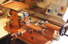 In der DDR konnte ich mir die einzige im Handel befindliche Tischdrehmaschine für den Hobbybereich, die sog. "Hobbymat" nicht kaufen. Mit einigem Aufwand an Konstruktion und Zeit habe ich mir meine Tischdrehmaschine selbst gebaut. Die Maschine hat keine Gewinde-Dreheinrichtung und keine Vorschub-Einrichtung, weil beides beim Hobby nicht wirklich benötigt wird, dafür aber eine Spannzangen-Einrichtung. Diese ist für den Modellbau wichtiger. Das Maschinenbett ist eine Rundwange mit oben liegender Abflachung. Ein Foto hier: