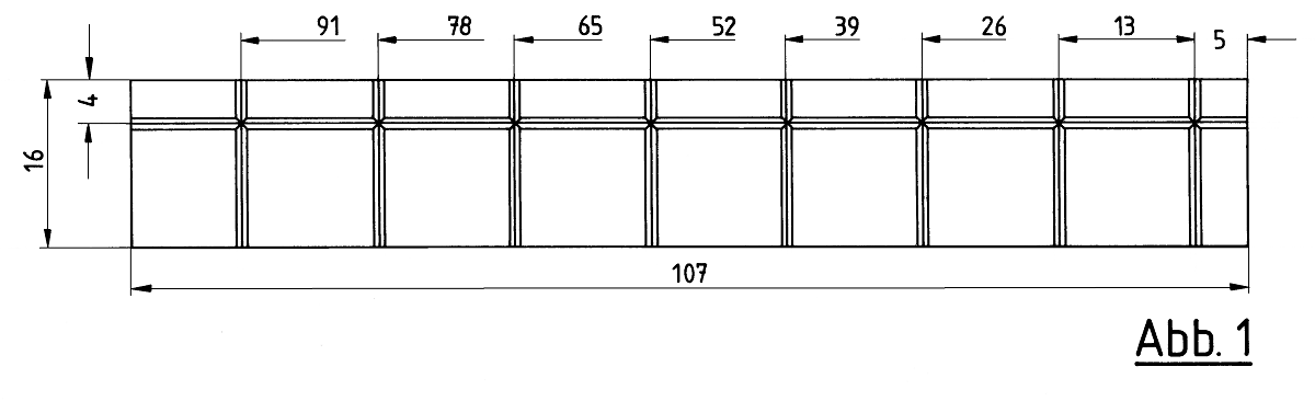 als ersten Schritt die „Träger“ in exakten 13-mm-Abständen an das jeweilige