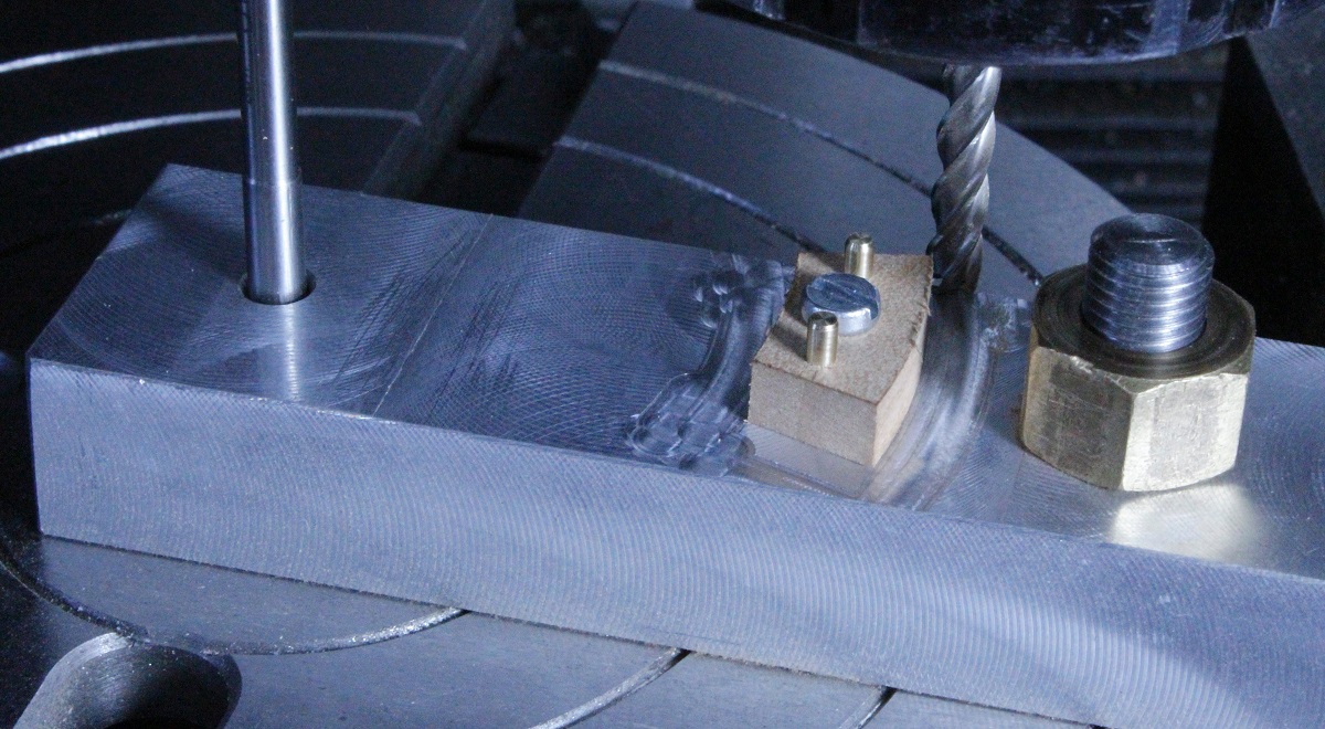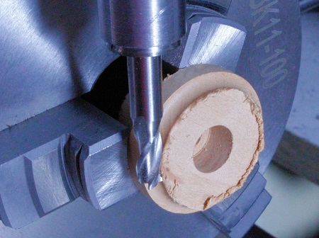 eben Gefräste läuft exakt rund. Danach fräse ich mit einem 5-mm-Fingerfräser je