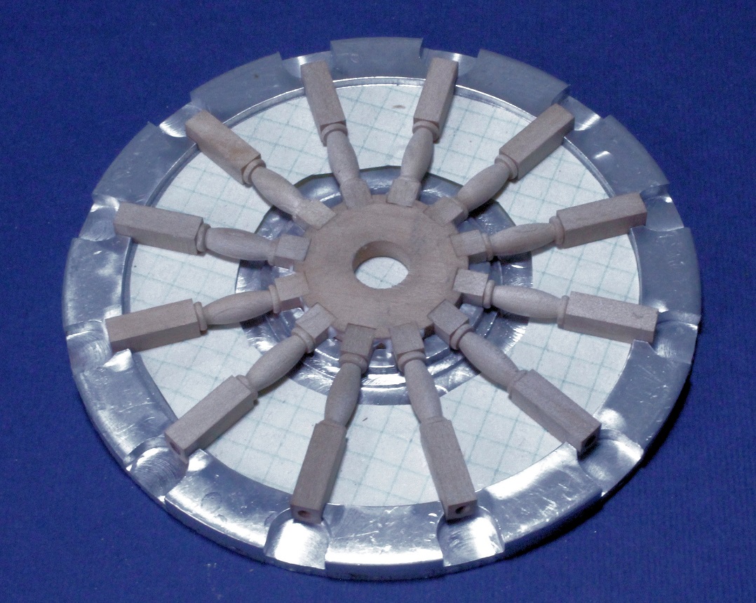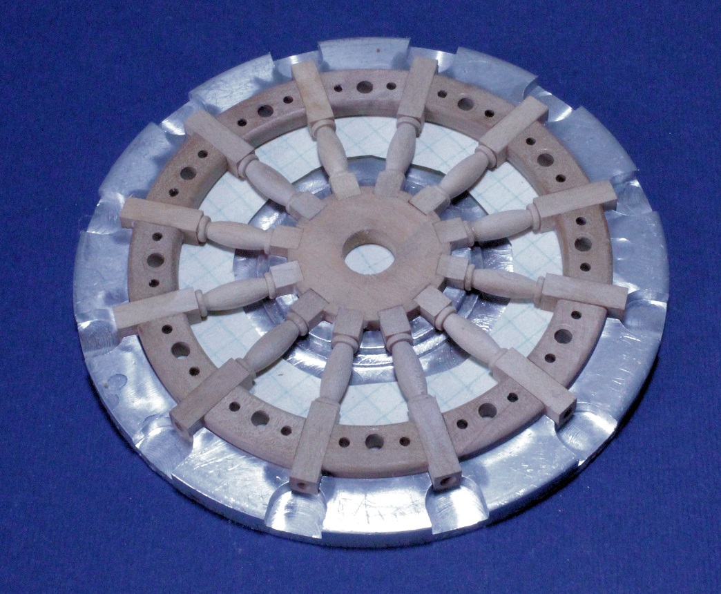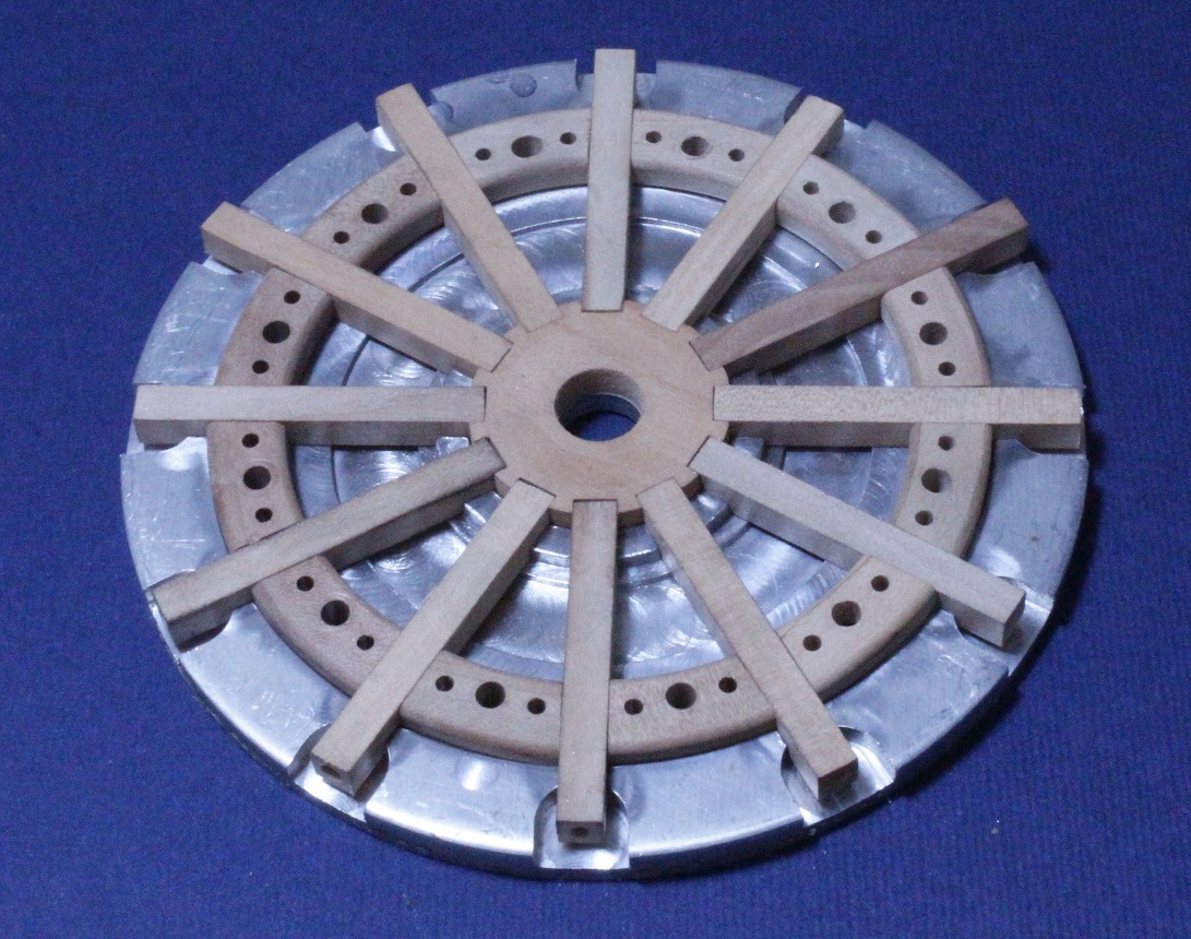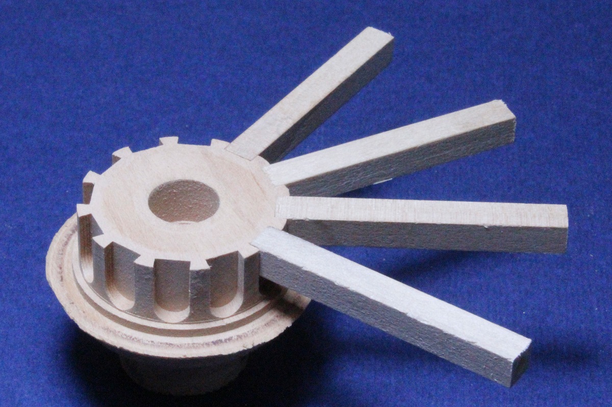 bei mir die Nabe aus drei Holz- und zwei Metall-(Ms-)Teilen. In Abb. 25