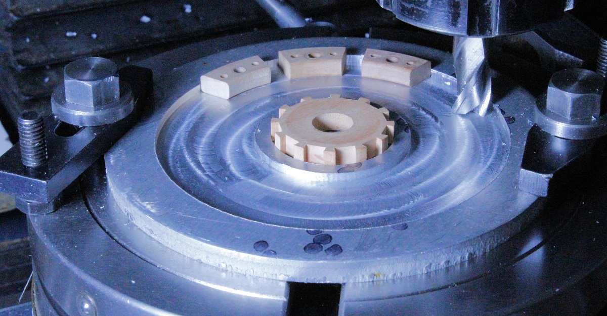(„gestellter“ Rundtisch) mit einem 5-mm-Fingerfräser die zwölf 2 mm tiefen Nuten