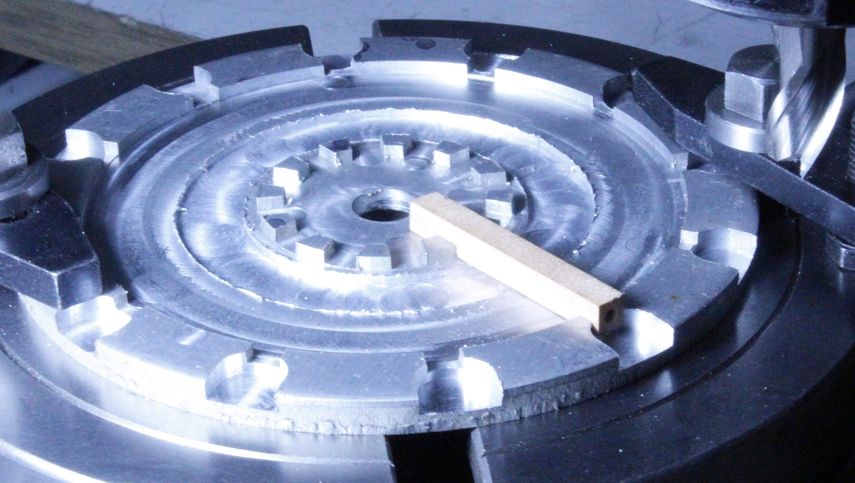 5-mm-Fingerfräser auf dem (stehenden) Rundtisch an eine der beiden