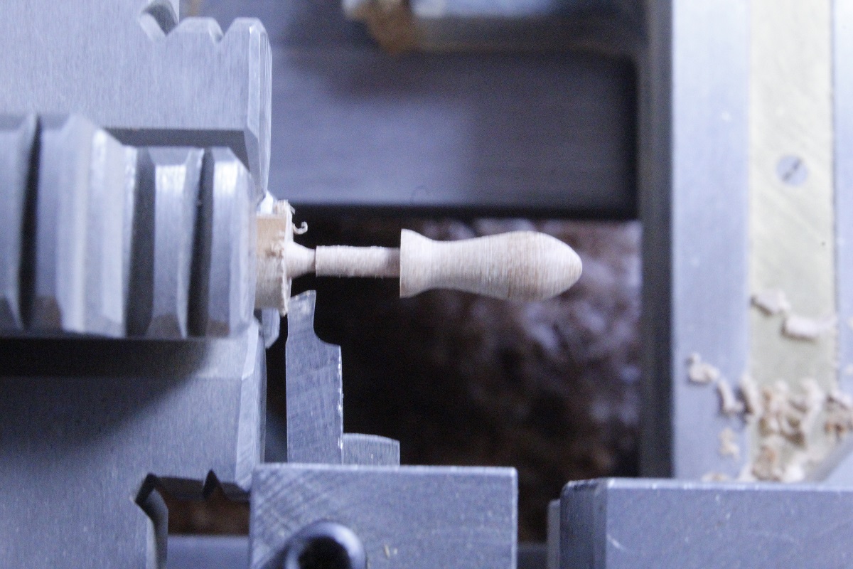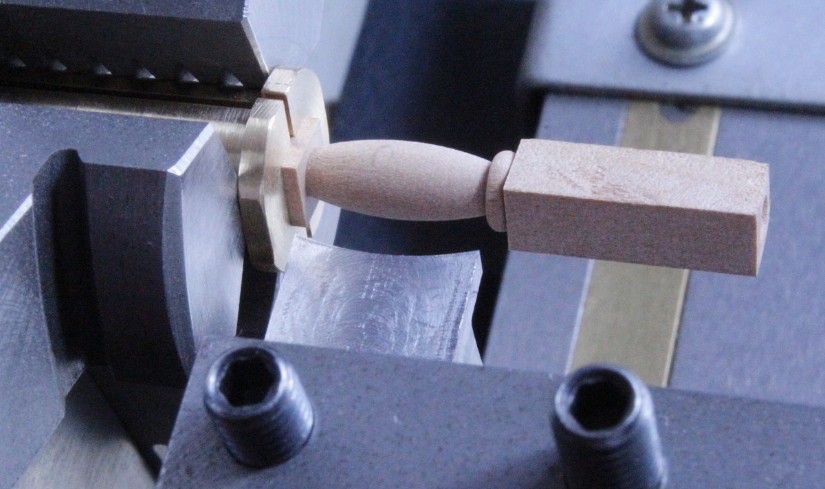 jeden Griff einen 2-mm-Zapfen angedreht und mit dem gleichen Stahl bei 6 mm