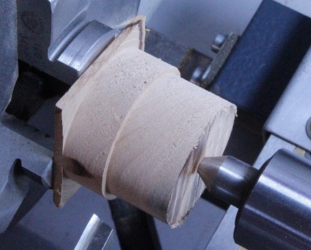 Holz. Bevor ich diese Holznaben drehen konnte, habe ich die viereckigen Rohlinge