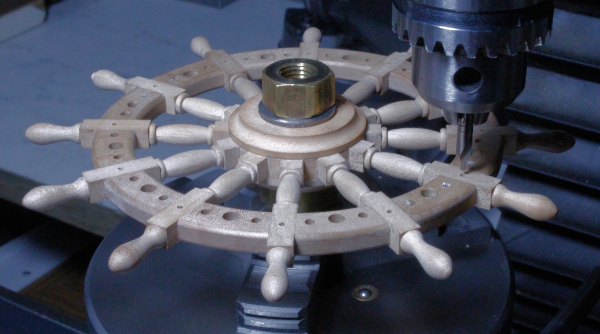 Steuerrades (wie nahezu alles an diesem Modell aus Birnbaum-Holz) mit den