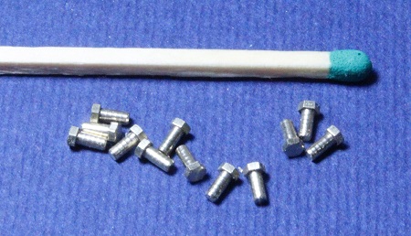 Schraubenkopf-Imitate wurden anschließend aus 2-mm-Sechskant-Messing mit