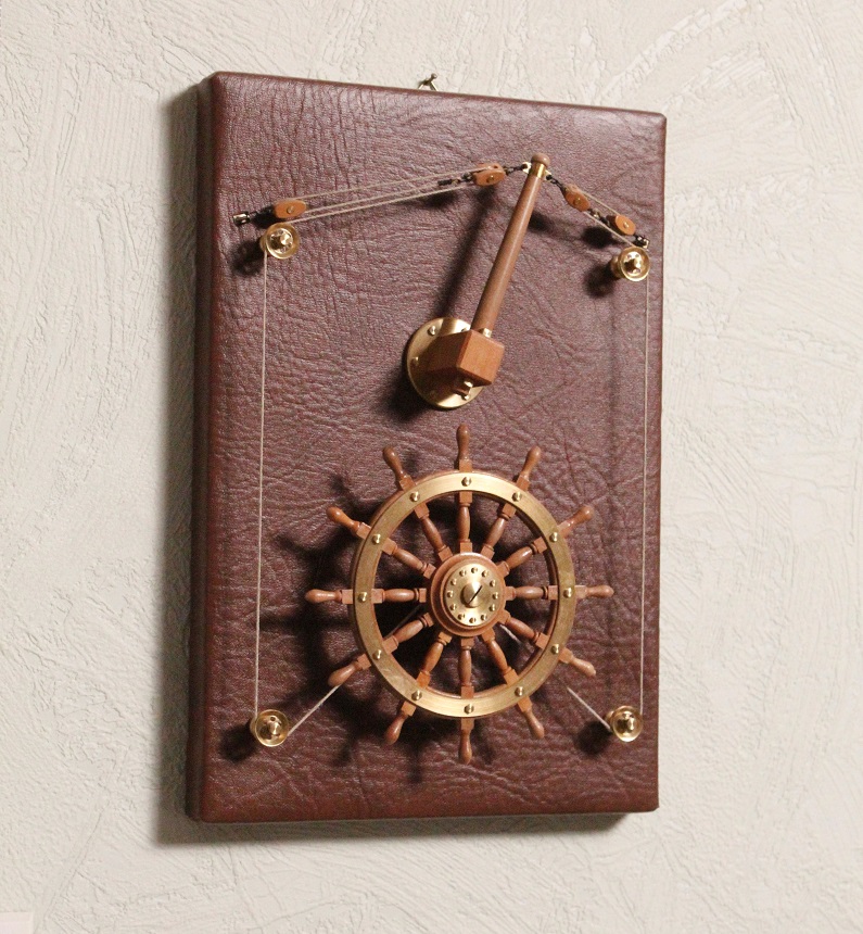 das Steuerrad eine Seil-Ruderleitung zu einer fiktiven Pinne gebaut, wie man sie