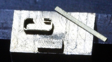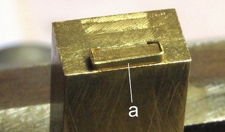 Abb. 6: Das Rechteck ist 1,2 x 5,2 mm groß. Beim Biegen drücke ich an der Kante bei (a) mit einem Flachstahl.