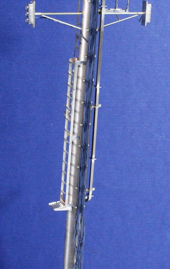 Abb. 30: Die Leiter an der Mastseite führt 5° schräg nach oben, jede Leitersprosse liegt aber waagerecht.