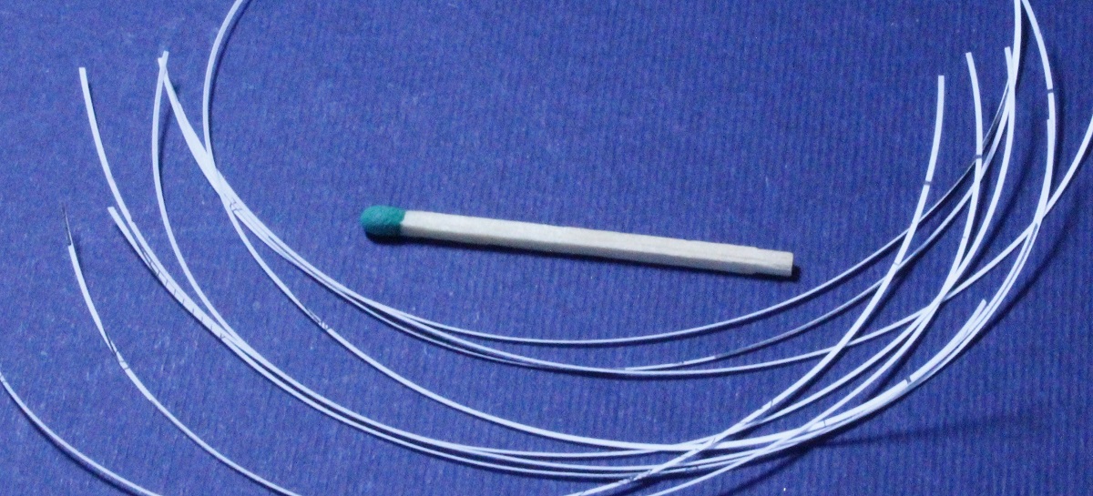 0,8 mm breit. Nach dem Schneiden sind die Streifen immer verbogen. An beide