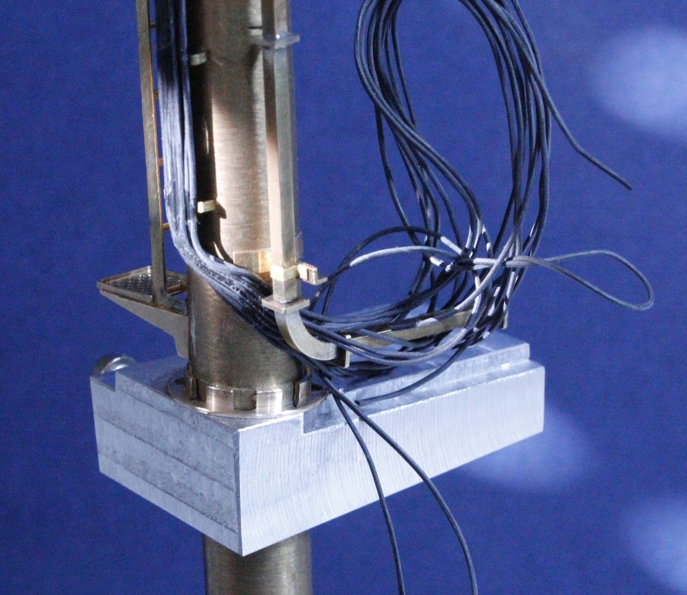Abb. 3: Selbst ein Kabel ist auf vier Brücken gelagert. Unten erkennt man die Decks-Durchführungsbuchse.