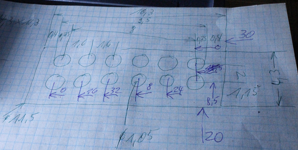 liegt auf dem Frästisch neben der Arbeit eine Handskizze mit den