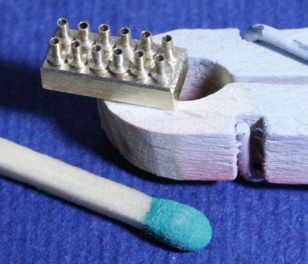 Abb. 24: Zwölf Buchsen mit 0,5-mm-Bohrungen werden gedreht.