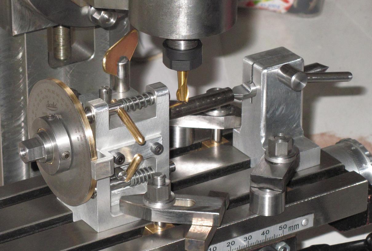 Ein kleiner Teilkopf gehört ebenfalls zum Eigenbau-Zubehör der Fräsmaschine. Er