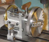Uhrmacher-Drehmaschine. Die zweite Teilspindel hat eine Aufnahme für