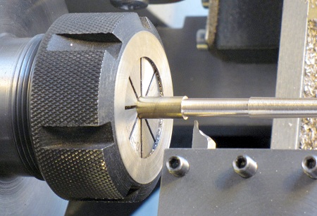 unteren Konusstücks (3 in Foto 1) in gleicher Weise. Vor dem Abstechen auf Länge