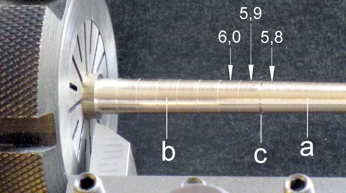 Rohrstücks den 9-mm-Absatz (c) 20 mm lang angedreht. Wenn dieser Absatz zu kurz