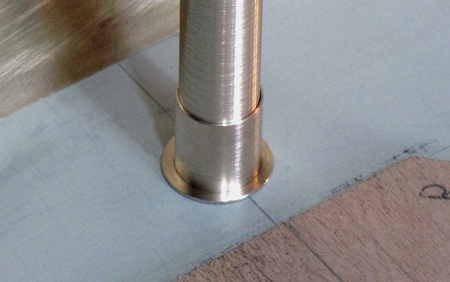 (Der Mastfuß, hier noch ohne Klebstoff.) dann auch die Decksdurchführung