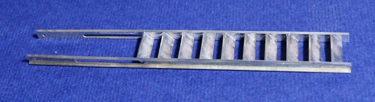 3,2 mm breiten und etwa 70 mm langen Seitenwangen der Treppe fräse ich aus