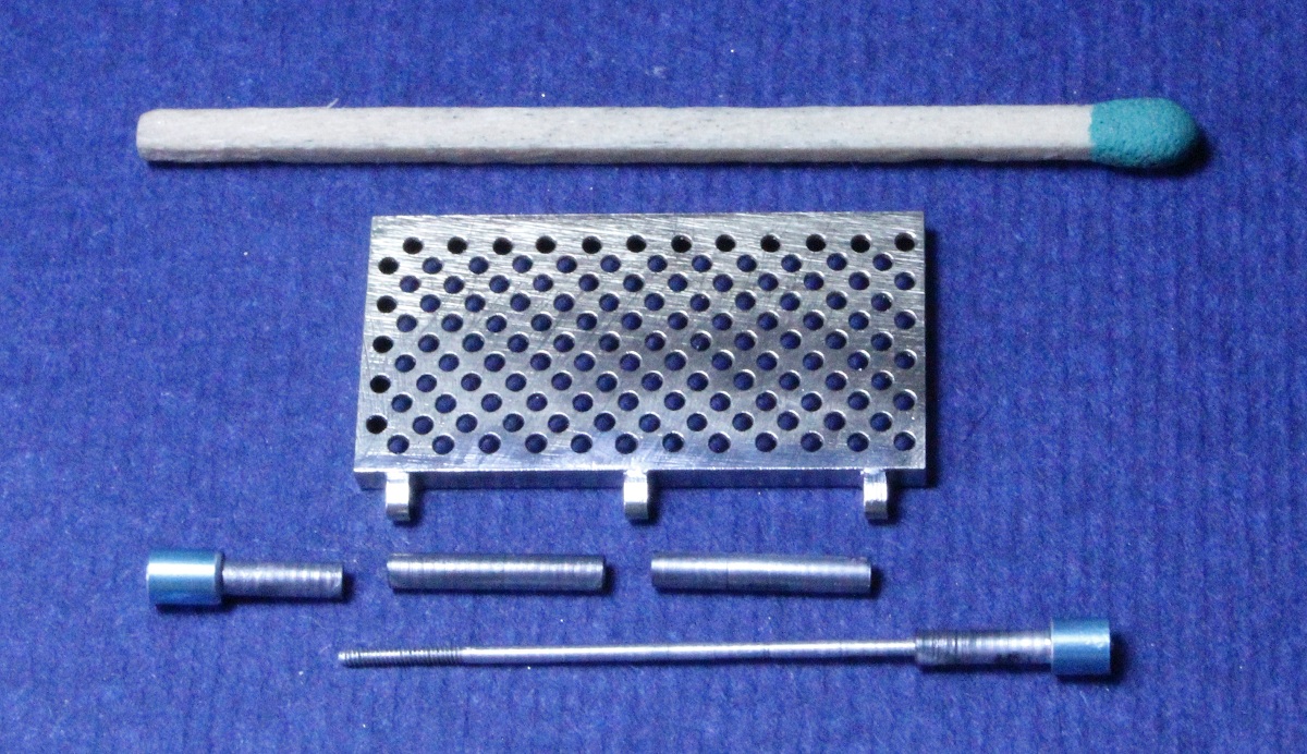eine Alu-Schraube (M 0,8) und Alu-Mutter (links-oben).