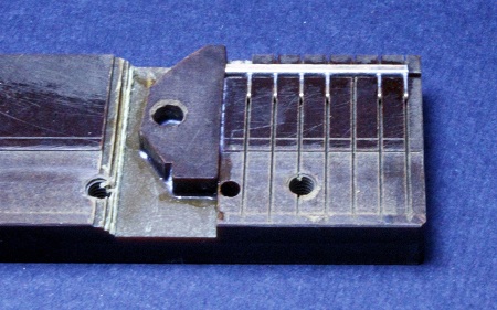 als Anschlag ein Pertinaxstück eingeklebt. In der obersten Nut liegt ein Winkel