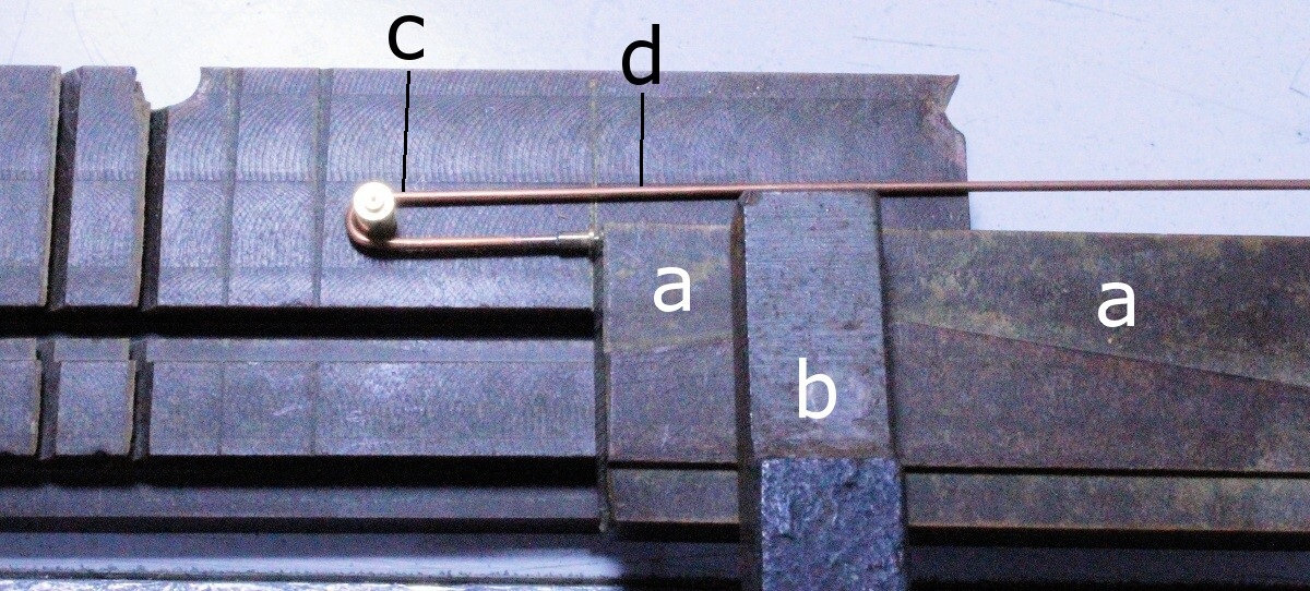 dabei als Anschlag. So konnte ich die je zwei 1,5-mm-Ms-Stäbe (d) und (e) (e