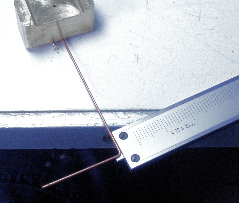 ebenfalls mit etwas Überlänge) im exakten Winkel zusammenlöten. Im Bild ist der