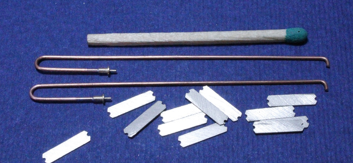 1 x 1 mm. Gegen den werden die Blechstücke geschoben und angelötet.