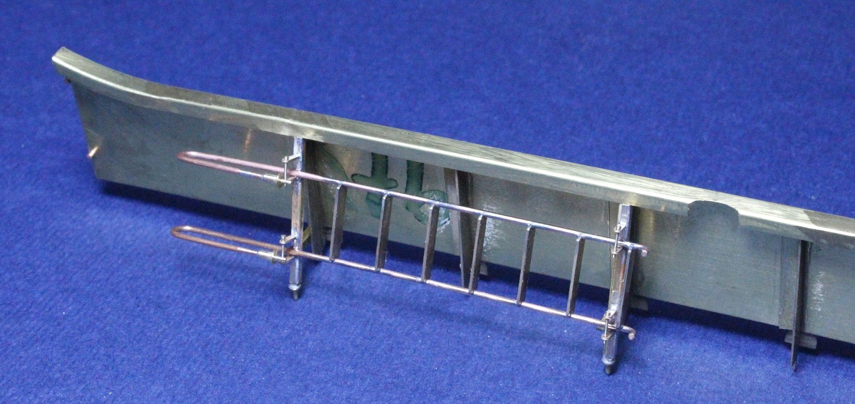 Leiter mit vier Halterungen an den Schrägstützen vom Steuerbord-Schanzkleid