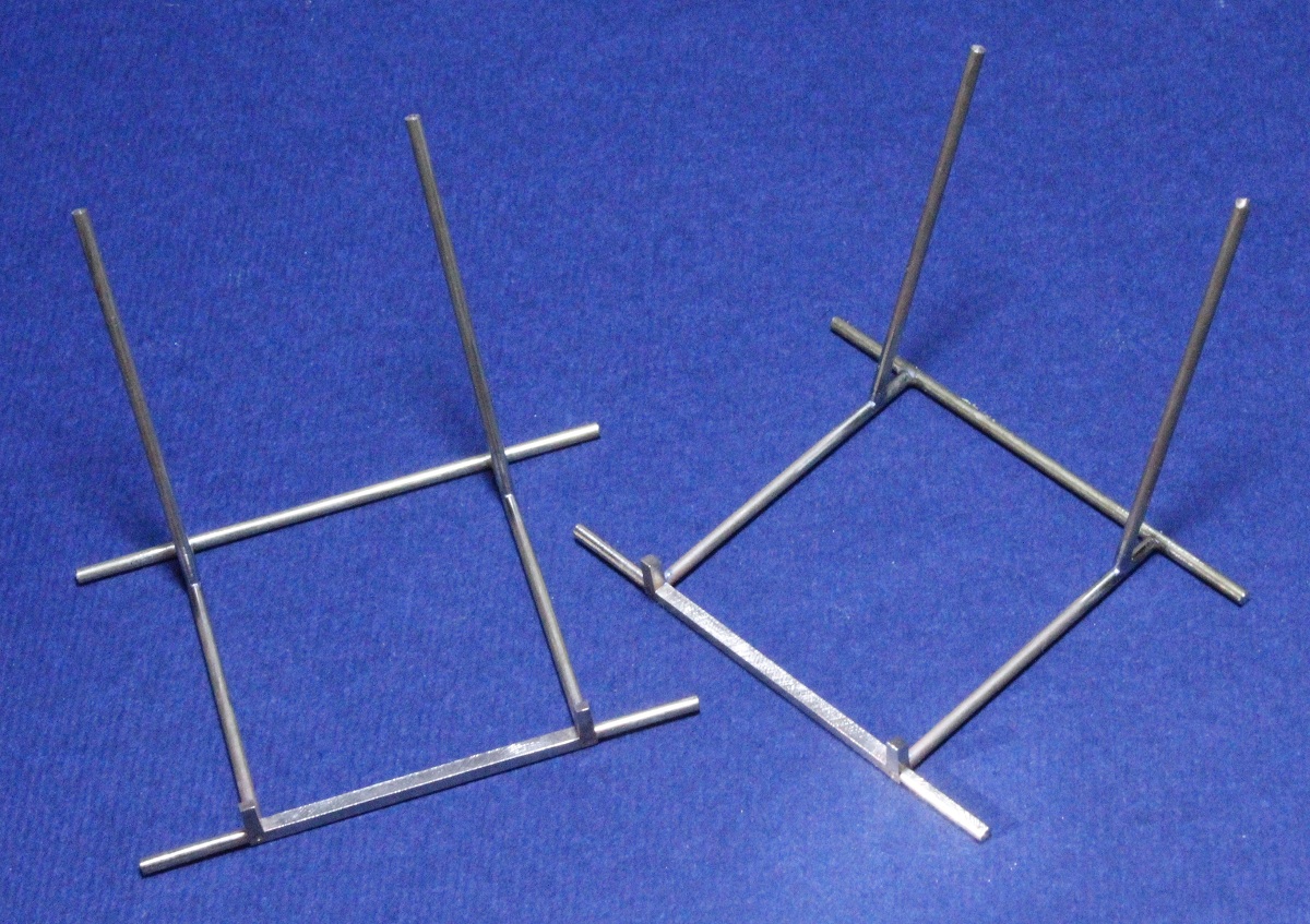 den Stab (f) angelötet. Damit die (e) dabei genau senkrecht stehen, lehne ich