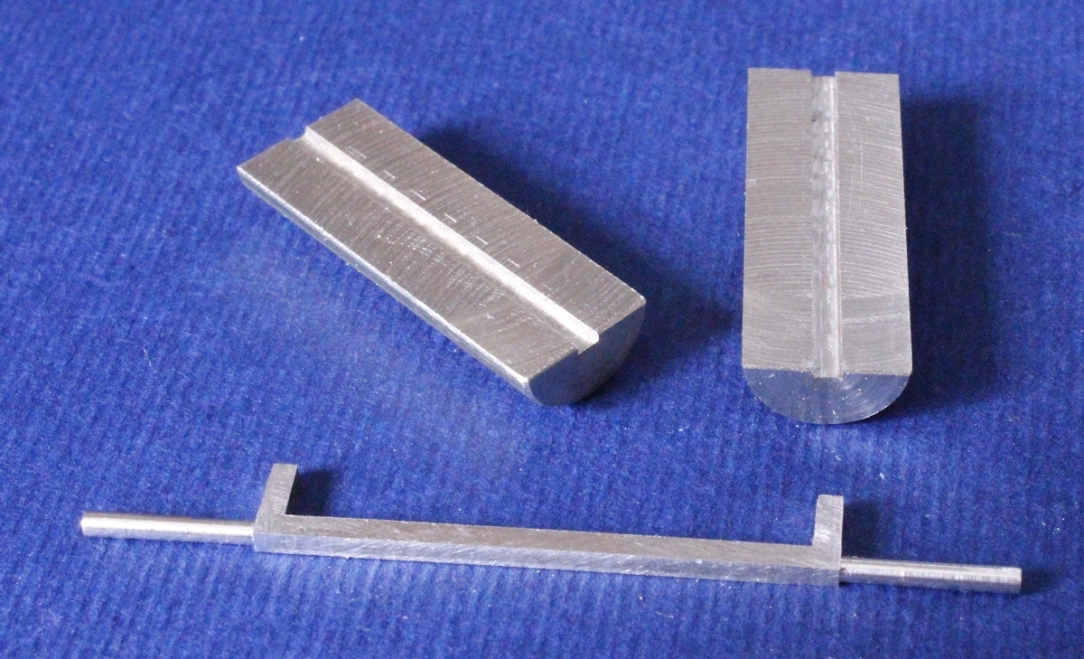 das Andrehen der runden Enden habe ich zwei Klemmstücke gefertigt, mit denen in