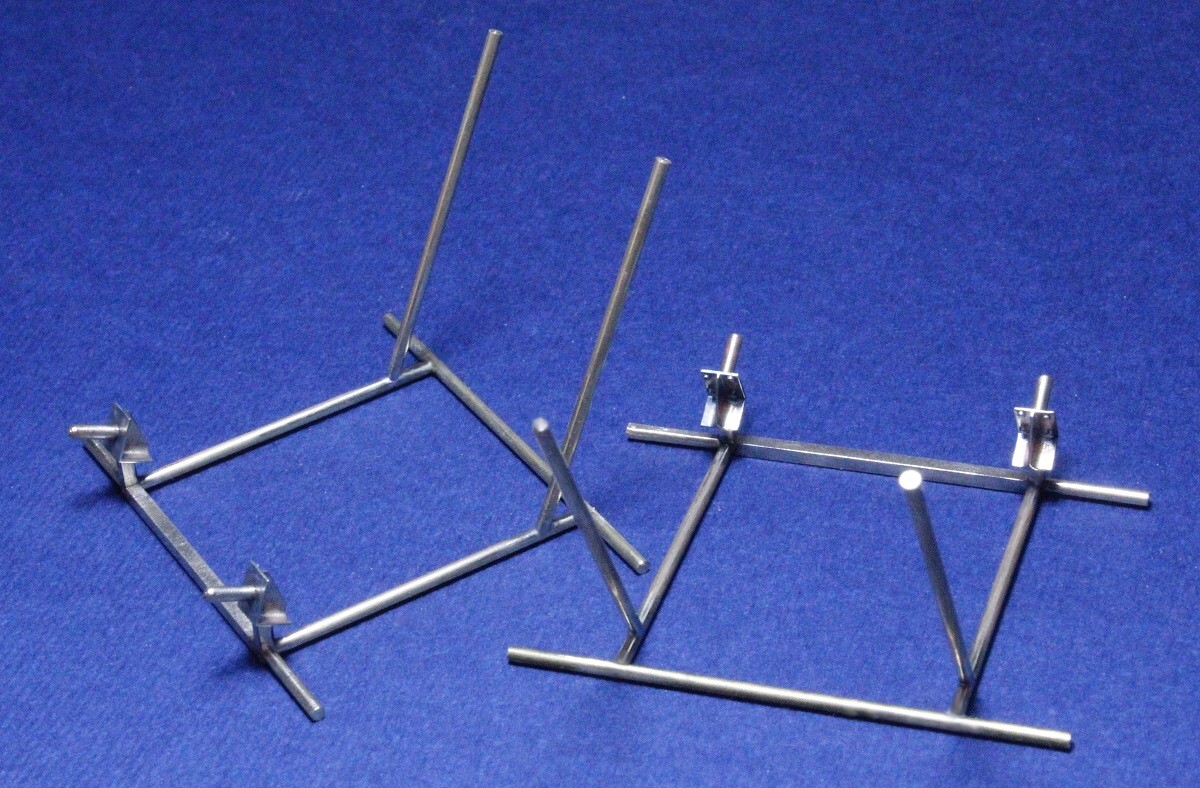 In dieser Lötvorrichtung habe ich die fertigen Rahmenteile auf die Konsolen