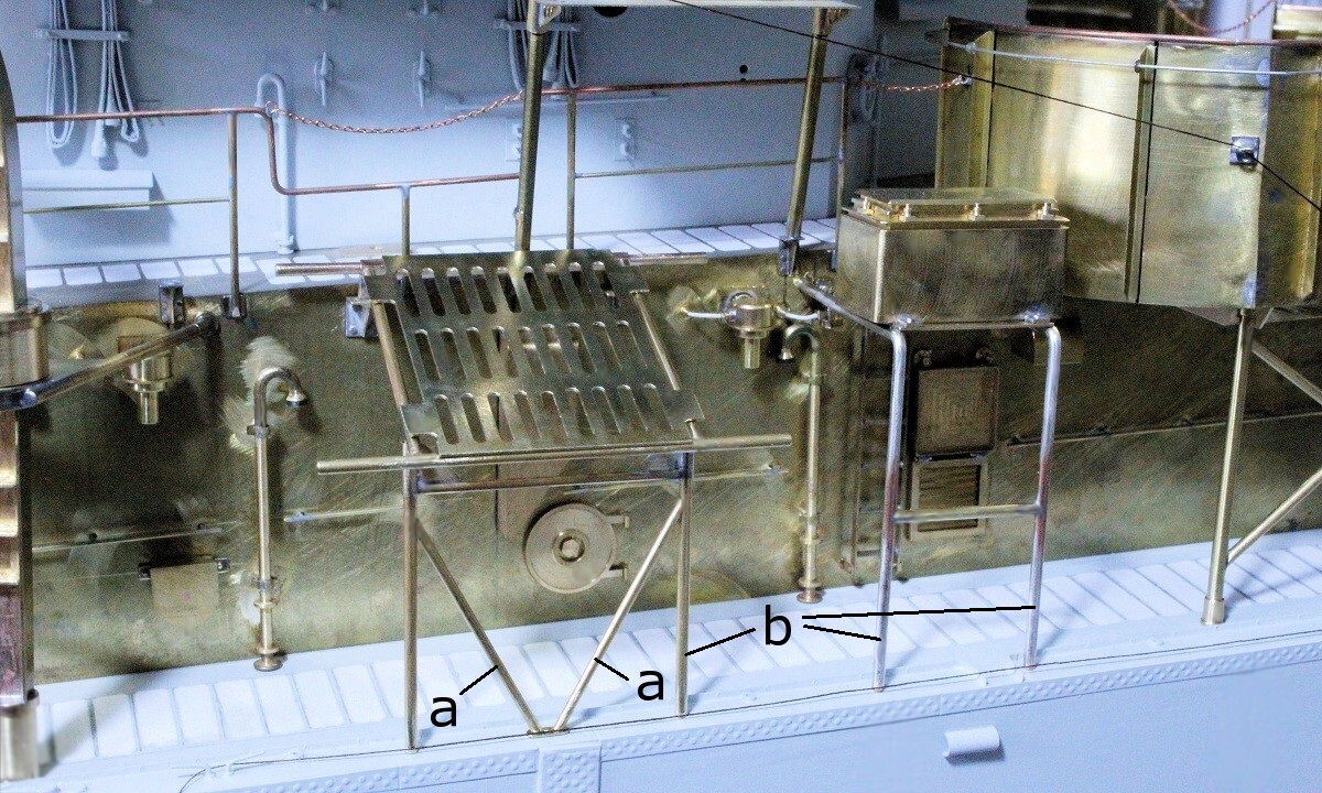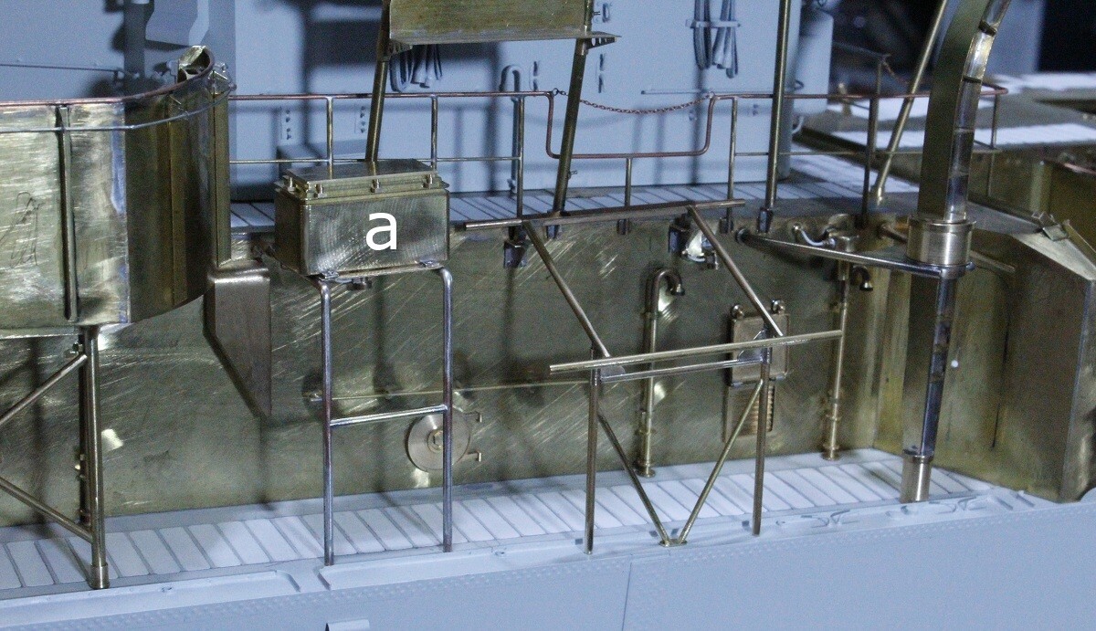 Deckshaus vom Modell genommen. Auf der vorderen steht eine Panzerkiste (a) für