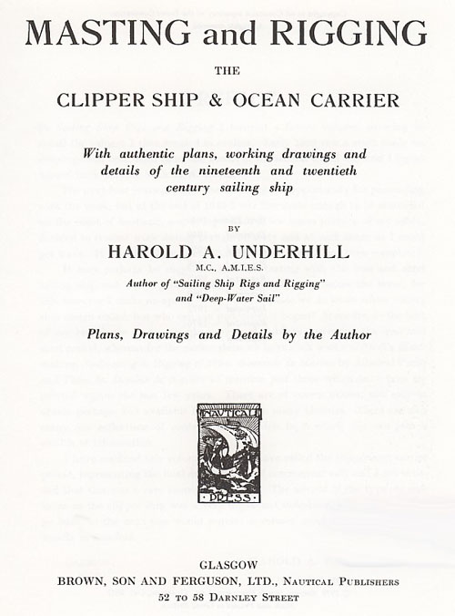 "Masting and Rigging", Harold A. Underhill, ISBN 0-85174-173-8, 1979