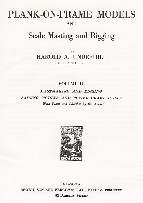 "Plank-on-frame models and scale masting and rigging" Vol. II, Harold A