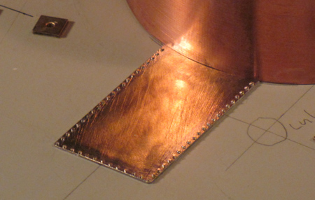 (Schraubenköpfe mit SW 0,6) eingesteckt, Lötwasser angestrichen und das Blech