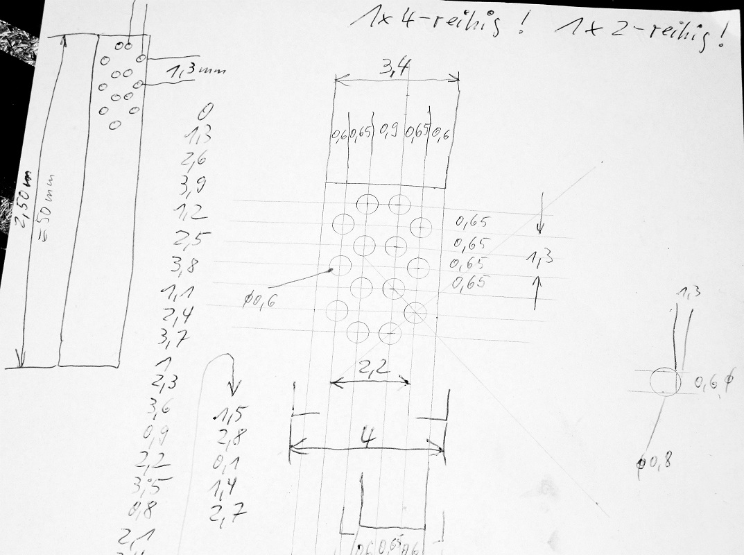 In die Zeichnung werden die Abstände der Bohrungsmitten eingetragen; später auch