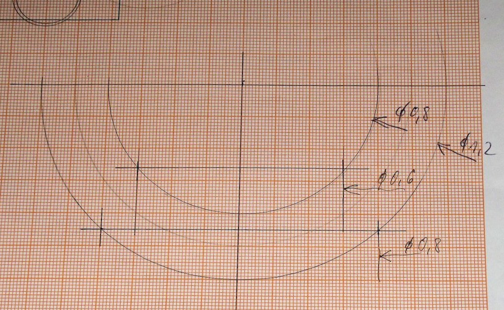 mm) mit einer 100:1-Zeichnung auf Millimeterpapier, wie ich es tatsächlich auch