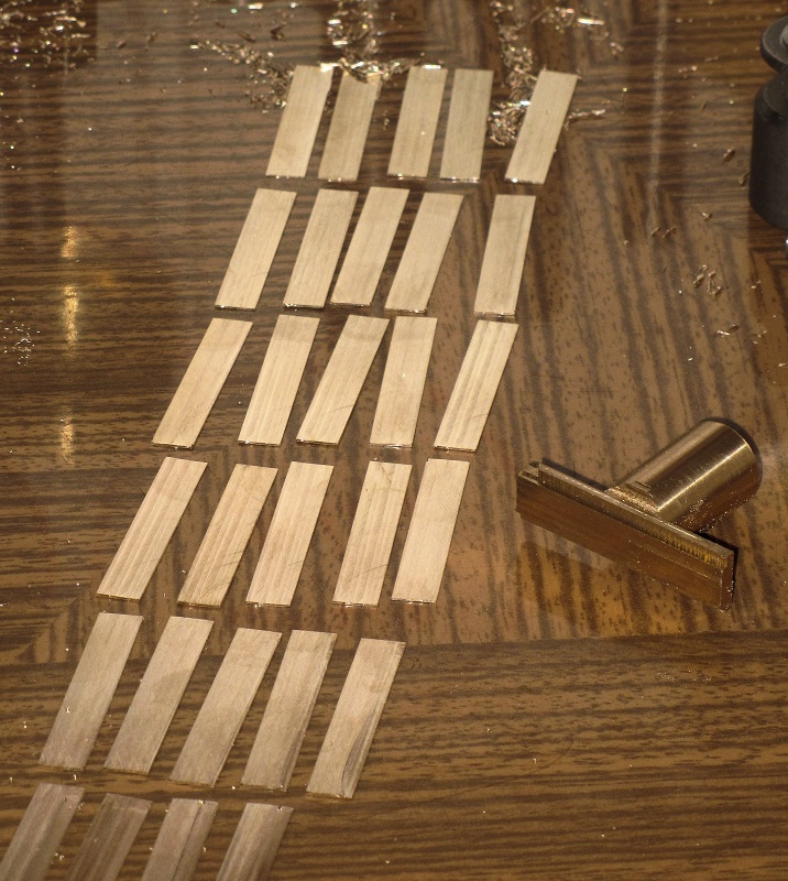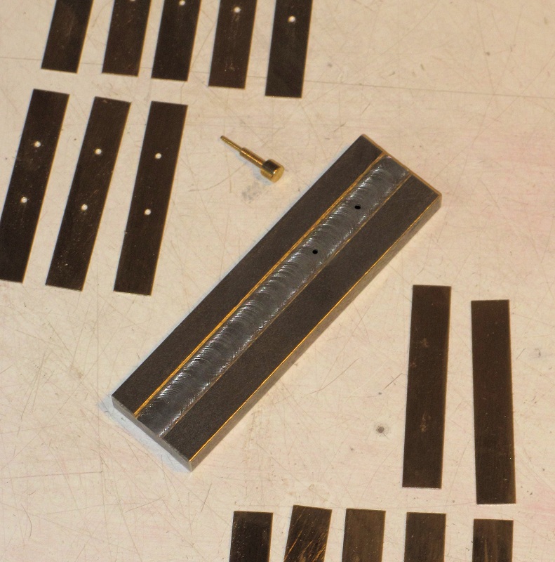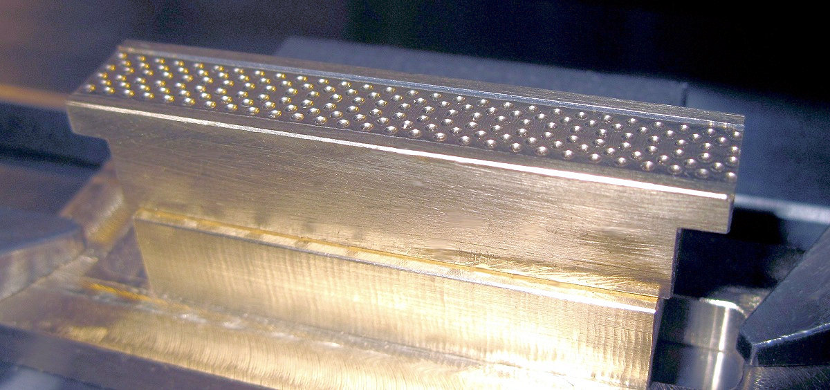 habe. Die Nietenkopfvertiefungen in die plangefräste Messingplatte habe ich
