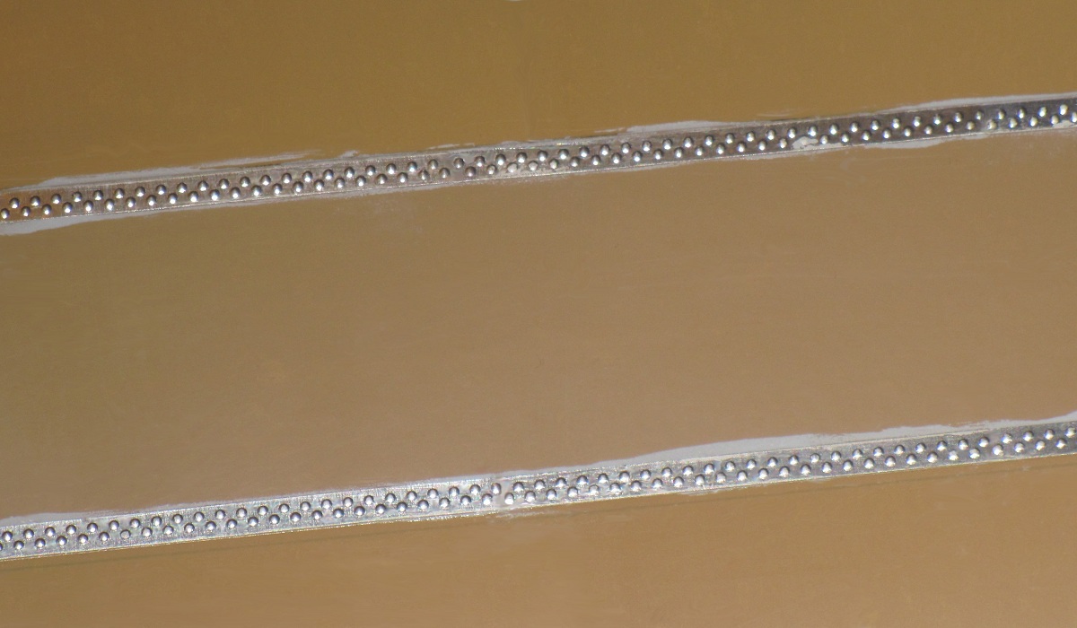 Beim oberen Streifen erkennt man, daß die Ränder oft etwas gerundet erscheinen.