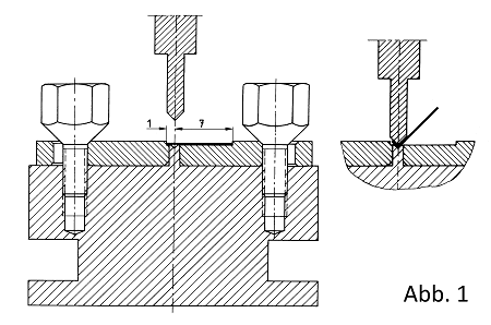 Oberteil die vier Bohrungen im Messer ganz durchbohrt. Die Richtung, wie das