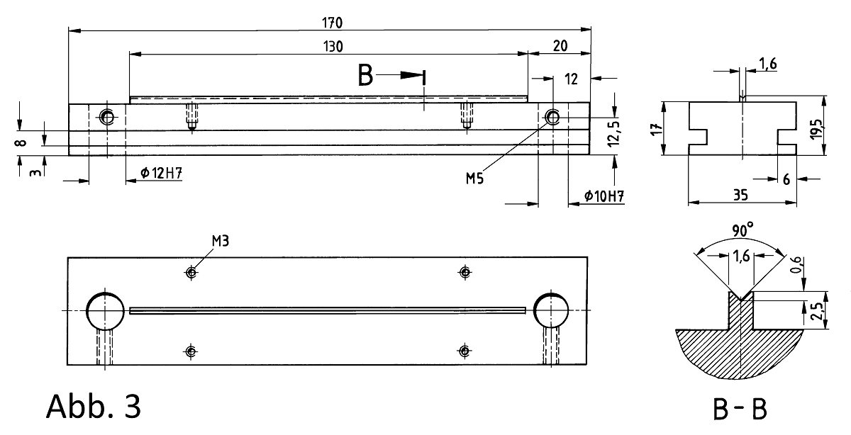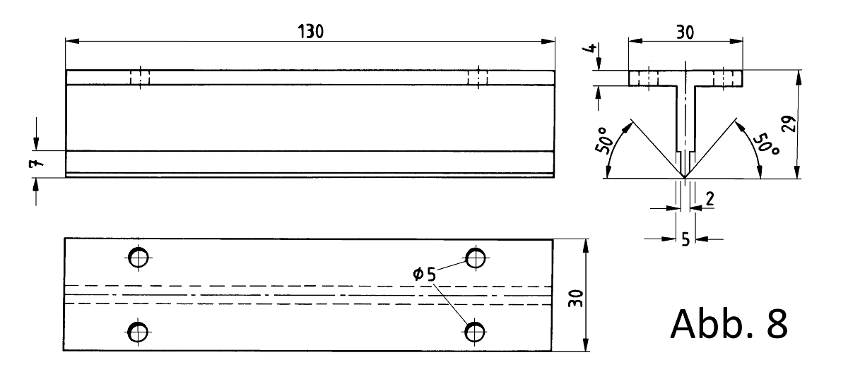 tiefen und 5 mm breiten Längsnuten an den Seiten und die beiden M5-Bohrungen vom