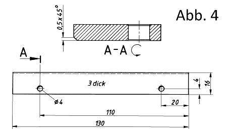 beiden 4-mm-Bohrungen (Maß 90) und vom Maß 4. Die geplante Anzahl Leisten werden